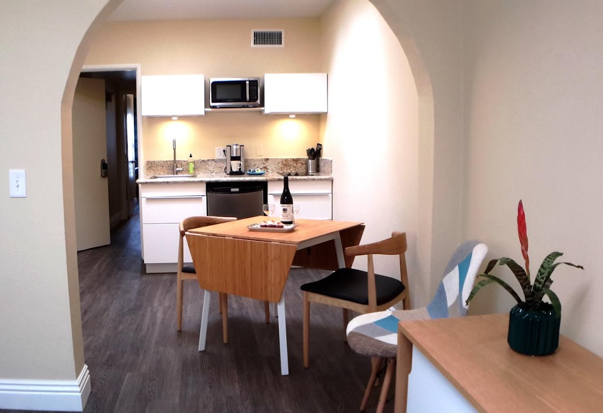 Great option. No frills, but comfortable efficiency apartment style makes a great value. Clean and comfortable. The kitchenette is reasonably stocked. I will use them again.