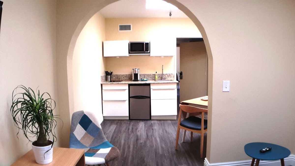 We stayed the weekend at this quaint studio apt. It is kind of a cross between a hotel and a hostel. There's a modern, clean private bathroom. Kitchenette with microwave, two stovetop burners, sink, and fridge. Location is spot on! Right in the heart of the Gaslamp Quarter. It's right above a Cuban restaurant so we were concerned about possible noise but even though you could hear music in the stairwell and hallway once you're in the room...peace and quiet. Would recommend.